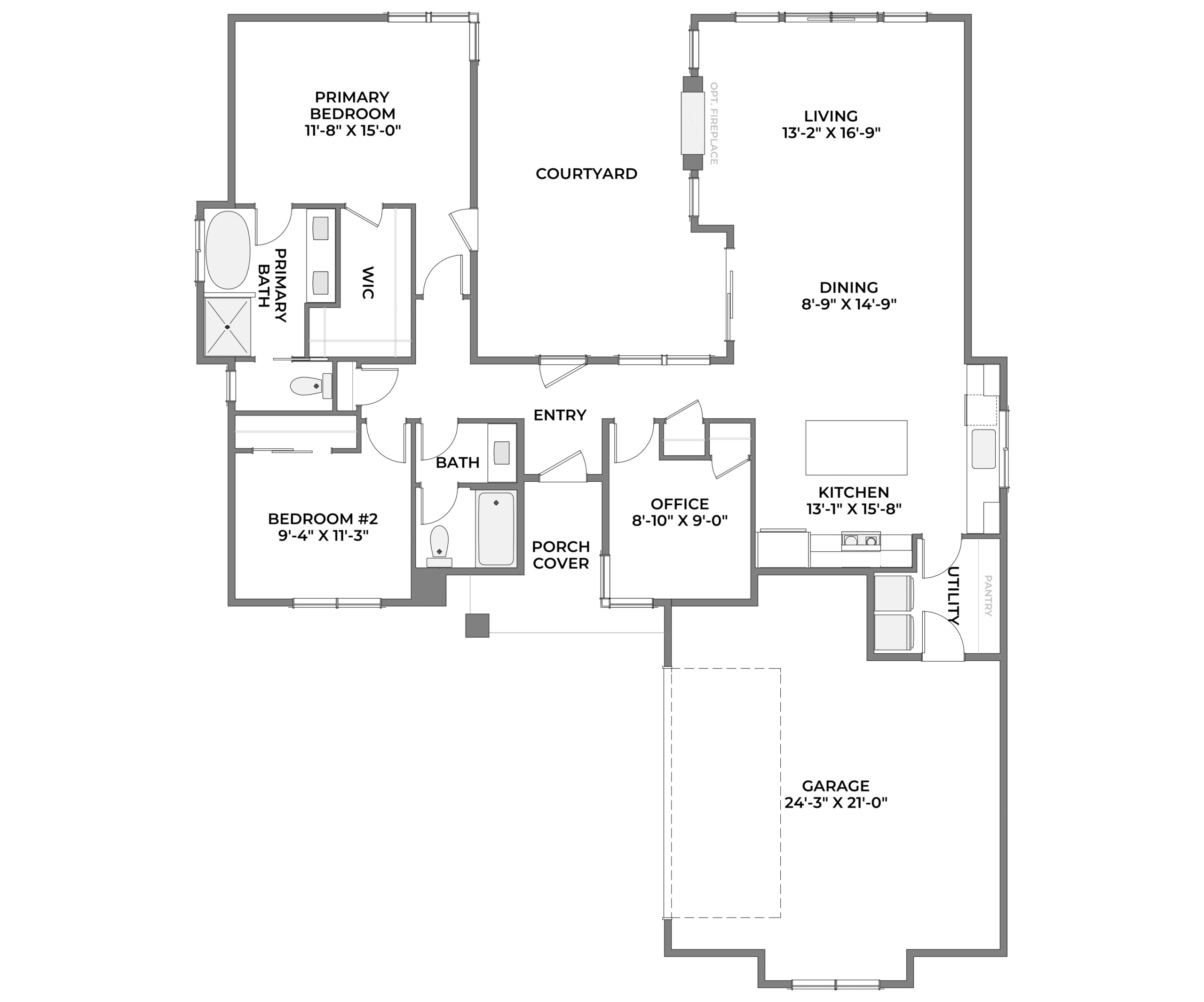 Tucked within its own private courtyard, Enclave Modern Luxe is a refined retreat designed for connection and calm. Clean rooflines and warm wood tones create striking curb appeal, while expansive windows draw natural light deep into the home. At its heart, indoor and outdoor living blend effortlessly around a central fireplace patio—perfect for slow mornings and golden-hour gatherings. A thoughtful split-bedroom layout, dedicated office, and open-concept kitchen anchor everyday comfort in elevated simplicity. This is modern living—grounded, intentional, and beautifully inviting.